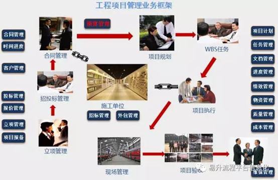 1. 项目管理可以与企业的ERP等系统全面整合,通过流程驱动和系统集成实现“协同化”的应用成效。搭建以业务流程管理BPM为核心的新型项目管理应用方案。