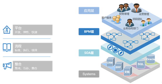 BPM涵盖协同管理、项目管理、客户关系管理、SRM管理、费用预算管理等功能套件,同时与ERP、MES等系统形成有效的互补关系,完全满足用户大数据量的高性能要求.快速集成其他业务,同时它也是一套开发应用平台,是企业IT建设的核心管理平台与中枢神经系统。
